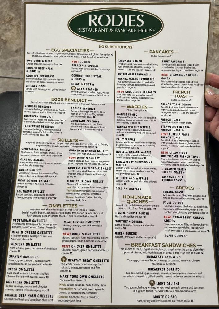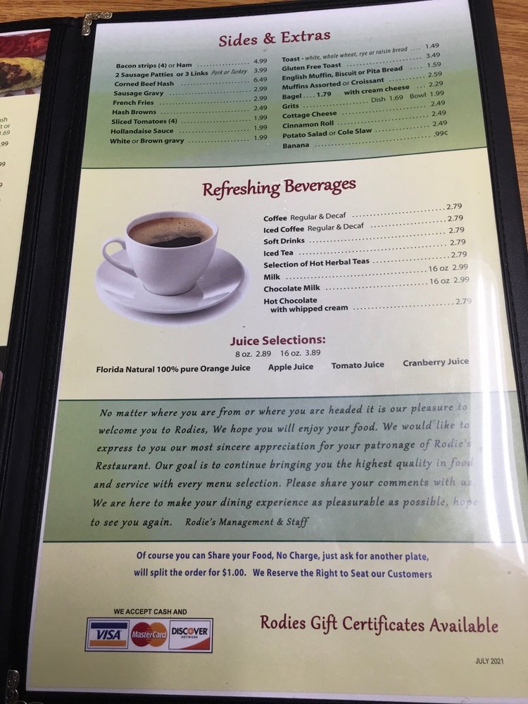 Welcome to Rodie's Restaurant & Pancake House, a charming breakfast and brunch destination located in Clearwater, FL. Known for its inviting atmosphere and friendly service, Rodie's has been a staple for both locals and visitors alike. The menu is a delightful mix that caters to every palate, featuring everything from classic Egg Breakfasts to flavorful Vegetarian Options like the Garden Omelet.